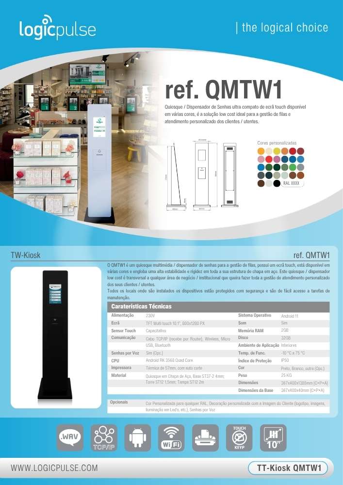 Le QMTZ1 est le distributeur de tickets / borne multimédia sur pied le plus complet pour les solutions de gestion de files d’attente. Il dispose d’un écran tactile, d’une imprimante et d’autres dispositifs optionnels tels qu’un lecteur de carte d’identité, un lecteur de codes-barres / QR code et un lecteur RFID. Avec un écran tactile de 17”, la borne QMTZ1 est disponible en plusieurs couleurs et offre une grande stabilité et rigidité grâce à sa structure en tôle d’acier avec peinture époxy. Les zones où les périphériques sont installés sont protégées par une serrure de sécurité et sont facilement accessibles afin de faciliter les opérations de maintenance.