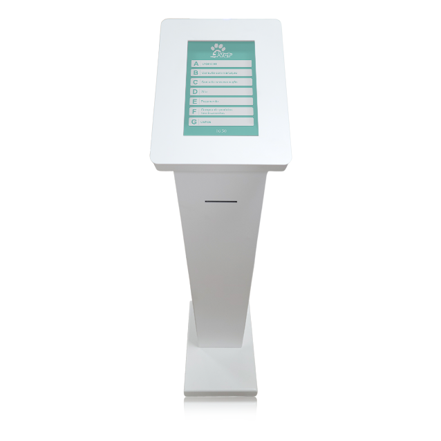 Soluções de dispensador de senhas, quiosques multimédia e inquéritos de satisfação.