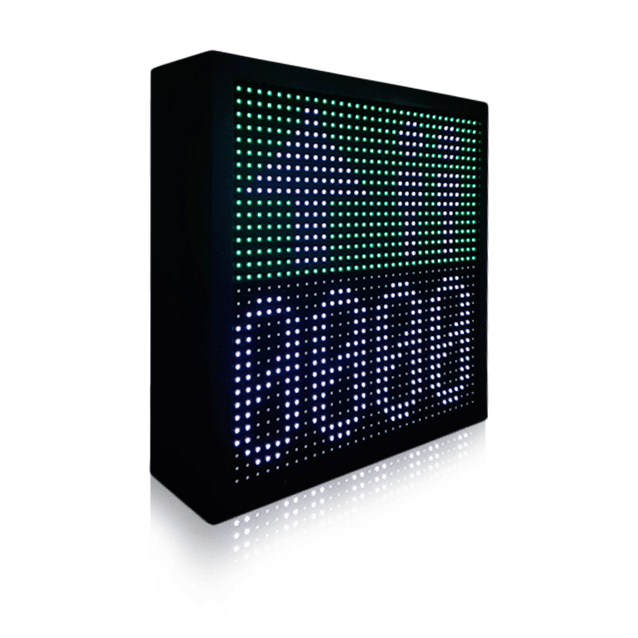 Painel LED RGB informativo preparado para ambientes exteriores e interiores. Possibilidade de vários tamanhos e resoluções. Utilizado para sistema de lotação de espaços, sistema de contagem de pessoas, sistema de TV corporativa, informativo de parques, etc.