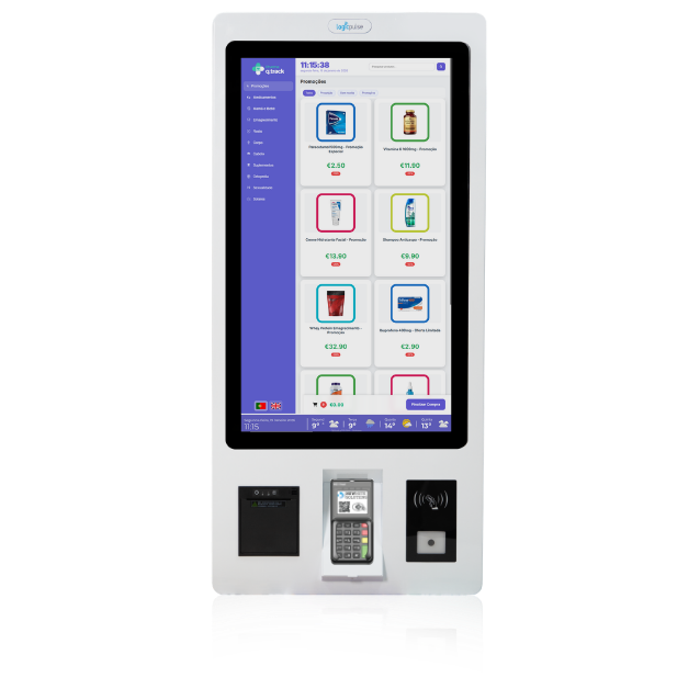 O Quiosque de Pagamentos TP2 combina inovação e eficiência com um monitor de 32” e suporte para múltiplas formas de pagamento, incluindo Cartão de Cidadão, cartões de pagamento (contactless), leitura de código de barras e QR code. A sua estrutura em aço com pintura epóxi garante elevada robustez, enquanto os periféricos, como o leitor de Cartão de Cidadão e o leitor de código de barras/QR code, podem ser opcionais, consoante as necessidades do cliente. Ideal para ambientes como serviços de saúde, sistemas de bilhética, parques de estacionamento, restauração e eventos, este quiosque oferece uma solução versátil e segura para agilizar pagamentos automáticos e otimizar o fluxo de utilizadores.