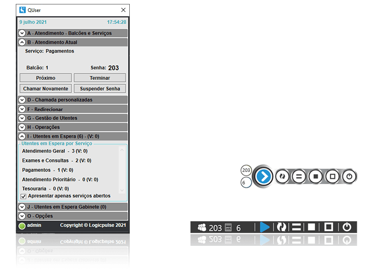 Módulo específicos para chamada por voz; Gestão de Utentes + Gabinetes; CC – Cartão de Cidadão; Senha Virtual (APP móvel + Agendamento WEB );